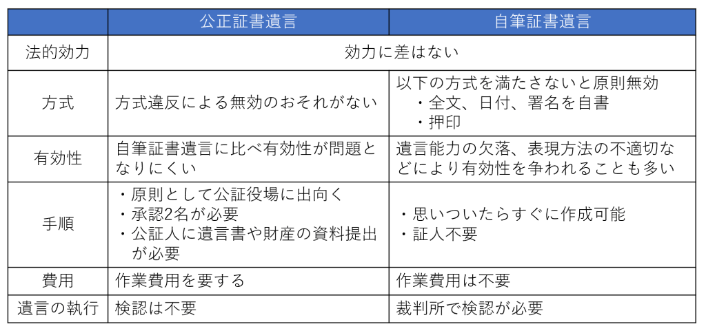 数種類ある遺言書の中でも一般的なのは、自分で書く自筆証書遺言と公証人が作成する公正証書遺言です。